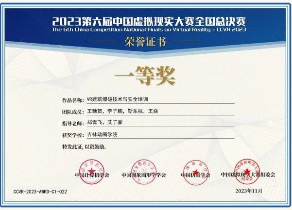 日前,由中国计算机学会、中国图象图形学会、中国仿真学会共同指导举办的第六届中国虚拟现实大赛(CCVR 2023)全国总决赛在江苏苏州落幕。伟德官网虚拟现实与电影技术学院共获国赛一等奖1项,二等奖9项,三等奖6项,伟德bv国际体育获得省级“优秀组织奖”,再创佳绩。