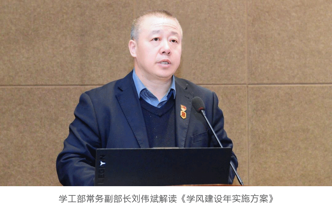 会上,学工部常务副部长刘伟斌解读《学风建设年实施方案》;民航学院院长周脉鱼、游戏学院常务副院长葛莹莹代表学院发言;教务部部长闫欣代表职能部门发言;图书馆馆长海涛宣读伟德bv国际体育师生“读书行动”倡议书。