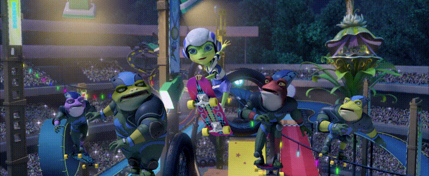 第三部《青蛙王国之极限运动》延续前两部精美制作的风格,在庞大世界观的基础上再次升级,将创作的触角延伸到炫酷的极限运动上,在模型、特效、动画、灯光等多个方面进行了技术的突破。影片结合了专业演员的表演和动态捕捉技术,共同完成人物立体化的呈现,将表演艺术与动画技术融合起来,是对“青蛙王国”系列动画进行的全面升级。