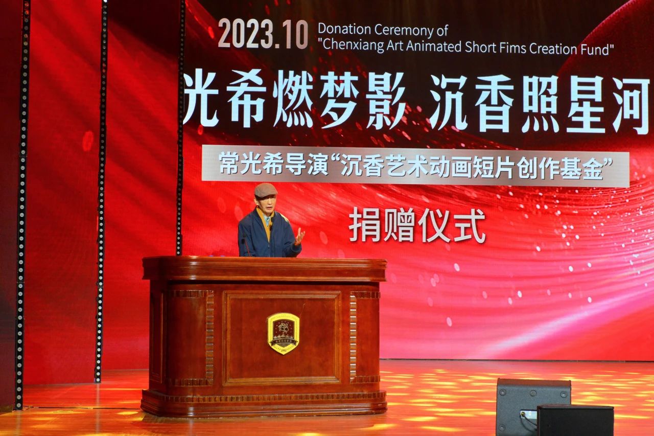动画艺术学院教师代表崔玲玲、学生代表闫一诺分别上台发言。闫一诺说,感谢常光希导演对吉动学子的慷慨捐赠,“沉香艺术动画短片创作基金”将激励我们继续前行,相信我们也能像您一样为小朋友们呈现出意义深刻的中国动画,为全世界的观众带来有中国特色、中国精神的优秀作品,回报您对我们的无私奉献!