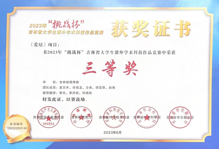 近日,由共青团中央、中国科协、教育部、全国学联和地方政府共同主办的2023年“挑战杯”吉林省大学生课外学术科技作品竞赛颁奖典礼暨大学生社团文化主题巡展活动在北华大学举行。本次赛事中伟德官网参赛作品荣获一等奖1个、三等奖3个。