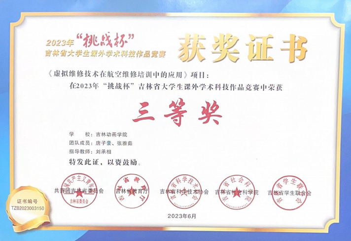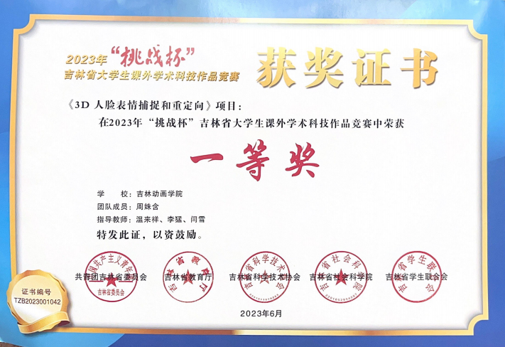 在省赛环节,吉动师生与来自省内多所高校的437个项目切磋竞技,最终获得《3D人脸表情捕捉和重定向》一等奖并晋级国赛;《数文绣藏-振兴吉林省满绣数字收藏发行者》《爱培》《虚拟维修技术在航空维修培训中的应用》三等奖的优异成绩。