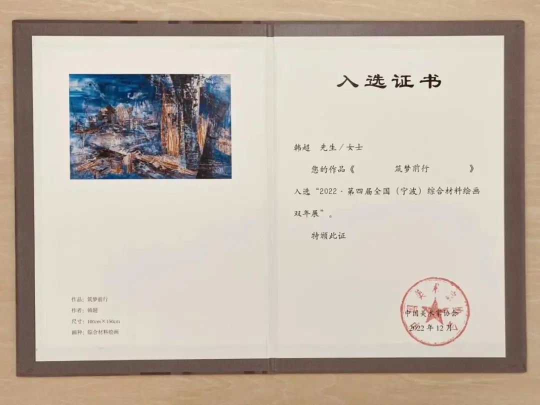近日,从相关部门获悉,伟德bv国际体育游戏学院教师韩超创作的作品《筑梦前行》,入选由中国美术家协会主办的“第四届全国综合材料绘画双年展”。