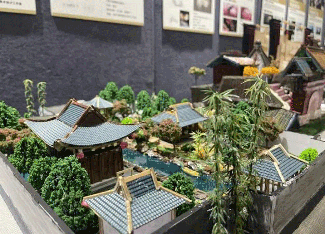 2019级影视美术设计工作室何好甜的毕业创作作品《山地空间》,创作灵感则来自于电影《功夫熊猫》中高低起伏的山地建筑,模型的整体是以自然景观为主要的,人文观为次要的。她说:“在景观规划的设计上,要尽量避免一览无遗,开门见山,因此将会把人文景观的建筑部分适当地进行遮挡,使其具有节奏感。”