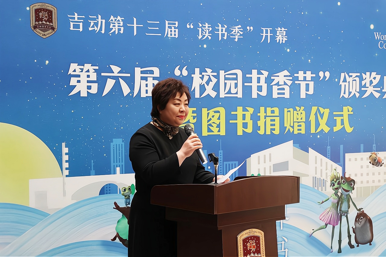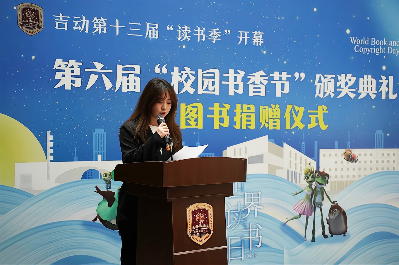 图书馆馆长海涛在致辞中说,吉动图书馆将一如既往致力于校园文化建设与阅读推广,以上半年“读书季”和下半年的“校园书香节”活动为载体,使文化活动贯穿全年,努力打造校园品牌文化活动;以建设书香大学为目标,提升校园文化艺术活动的社会影响力,引领吉动阅读风尚,让书籍点亮人生,让书香溢满校园。