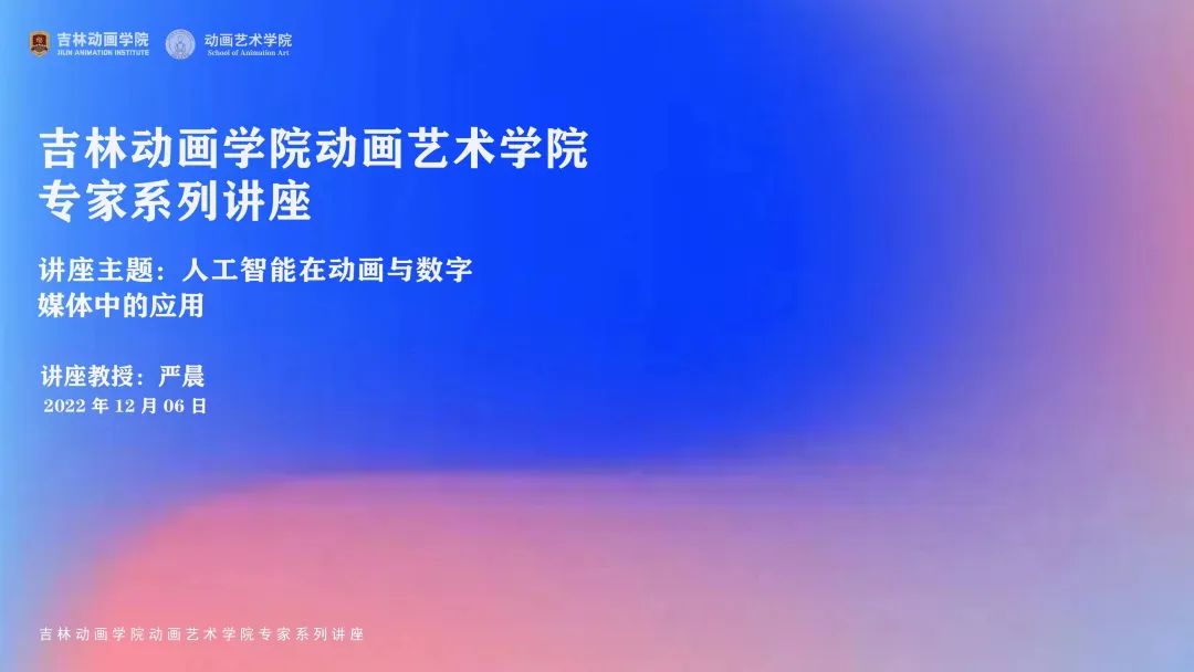 【JAI·讲】开讲了!“人工智能在动画与数字媒体中的应用”线上讲座 发布时间:2022年12月27日 13:45:00 浏览:次 近日,伟德bv国际体育动画艺术学院邀请北京印刷学院新媒体学院副院长严晨教授,为学院师生作了“人工智能在动画与数字媒体中的应用”主题线上讲座。吉动动画艺术学院常务副院长孙淑梅主持讲座,院长助理乔德基、动画艺术学院部分师生在线上参加此次讲座。 北京印刷学院新媒体学院副院长严晨教授