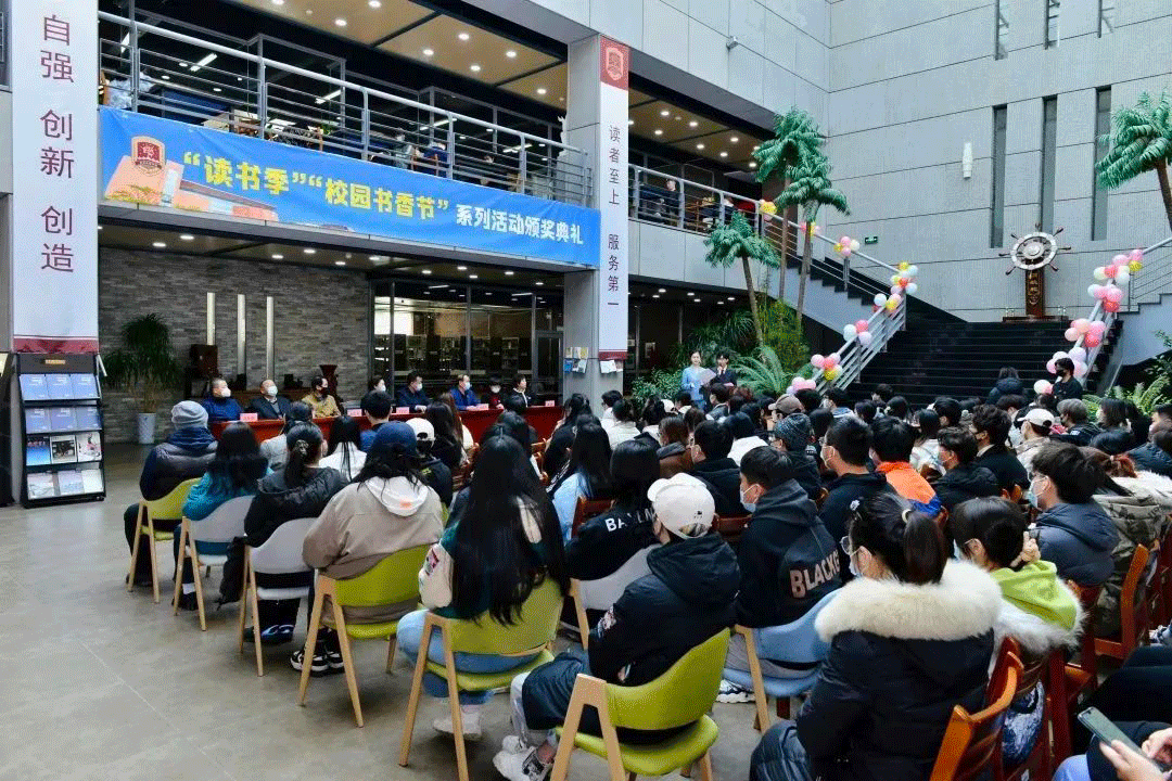 【JAI·新】吉动举办“读书季”、“校园书香节”系列活动颁奖典礼 发布时间:2022年11月22日 09:14:19 浏览:次 吉动第十二届“读书季”、第五届“校园书香节”系列活动颁奖典礼于 11月18日中午在图书馆二楼大厅隆重举行。学校党委书记、督导专员岳武、副董事长刘欣、党委副书记、副校长张砚为、校董事会监事兼文化产业商学院常务副院长许小多以及电影学院院长刘军谊、动画艺术学院党总支书记、副院长刘伟斌等参加了颁奖典礼。 ▲图书馆馆长海涛