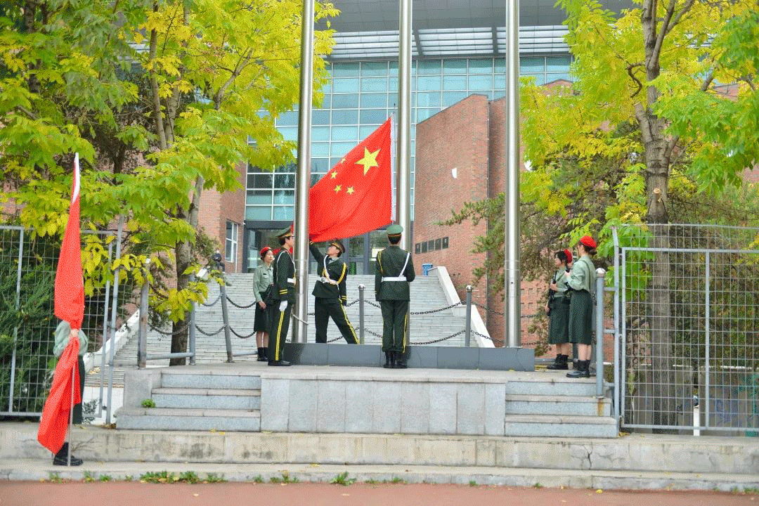 伟德bv国际体育国旗班的同学们迈着铿锵有力的步伐护送国旗来到升旗台。在雄壮激昂的《义勇军进行曲》音乐响起时,学校董事长、校长郑立国,党委书记、督导专员岳武以及其他领导班子成员和教师代表、学生代表500多人怀着崇敬之情,高唱《国歌》,共同祝愿伟大祖国更加繁荣昌盛。