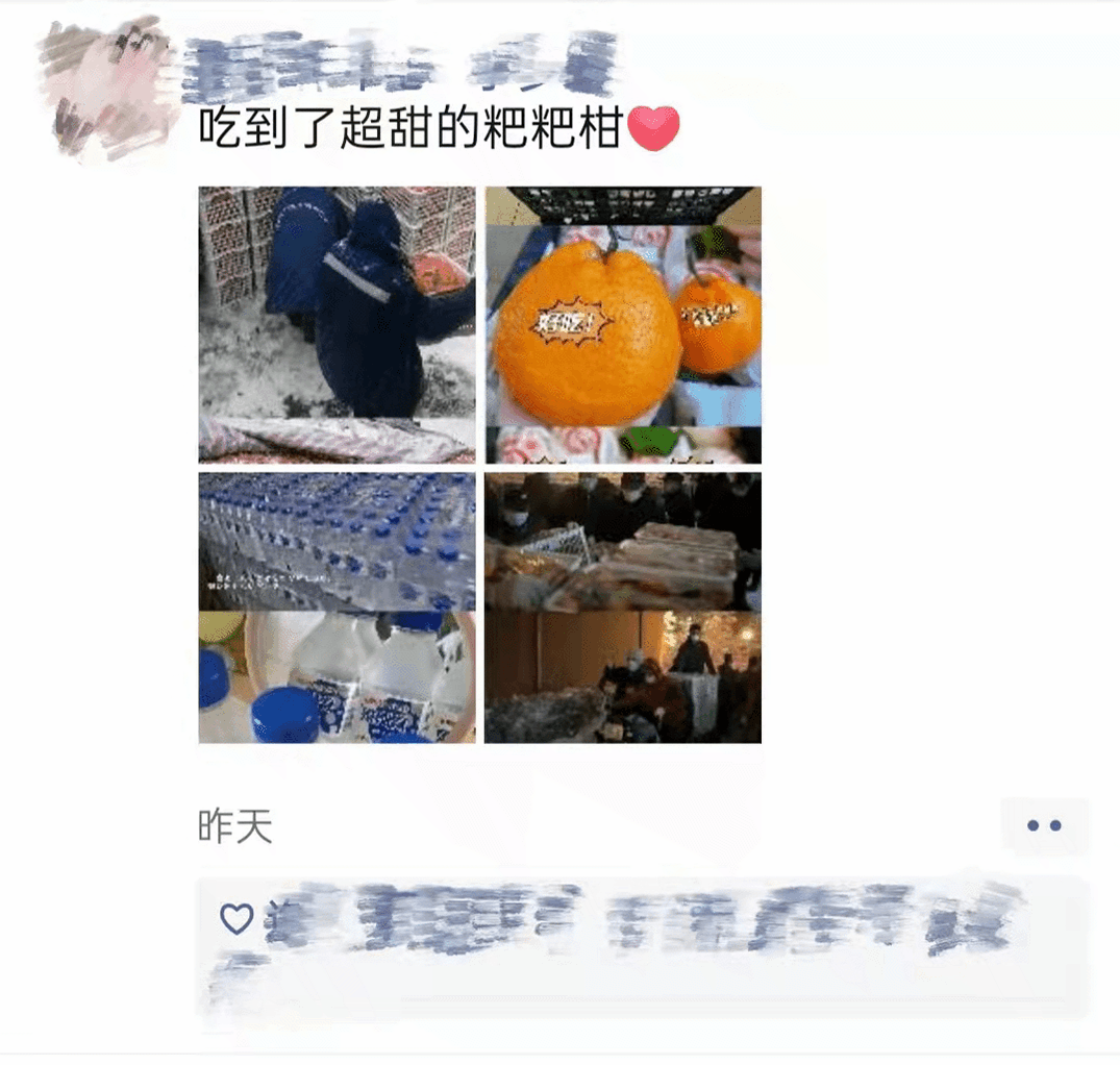 此外,学校高度重视学生的心理和身体健康,担心学生在校封闭期间闷在寝室会产生心理焦虑和营养失衡,马上组织老师成立心理辅导工作组,缓解学生心理压力。并且紧急从市场上外购60吨水果,9600箱矿泉水,免费发放给在校学生保证他们基本营养需求。学生们看见员工们顶风冒雪一箱一箱把30多斤的橘子扛到宿舍楼,汗流浃背的身影和付出感动了身边的同学,网名“盖饭不浇”的吉动学子在推文评论中写到:想起昨天晚上在宿舍正好看到后勤叔叔们在运水果,因为雪太厚路太滑,一个大叔艰难地将装满橘子的小推车一步步推过来,突然车滑了,橘子散一地,他们弯腰赤手把橘子一个个从雪里捡起来......天这么冷,还飘着雪......那一瞬间就突然很破防,后勤的叔叔阿姨还有其他工作人员、志愿者们,感恩有你们,你们辛苦了!