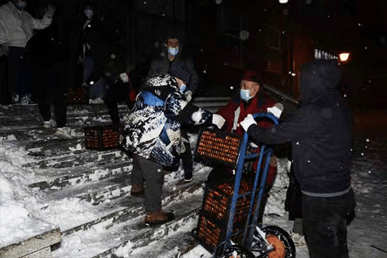 2022年春天的吉动校园,是落雪都能听见的寂静,有一群人,顶着皎洁的月色和满天的大雪,把一箱箱30多斤的桔子扛在肩上,送到学生手里,雪中咯吱咯吱的脚步声,在幽静的夜里格外响亮。。