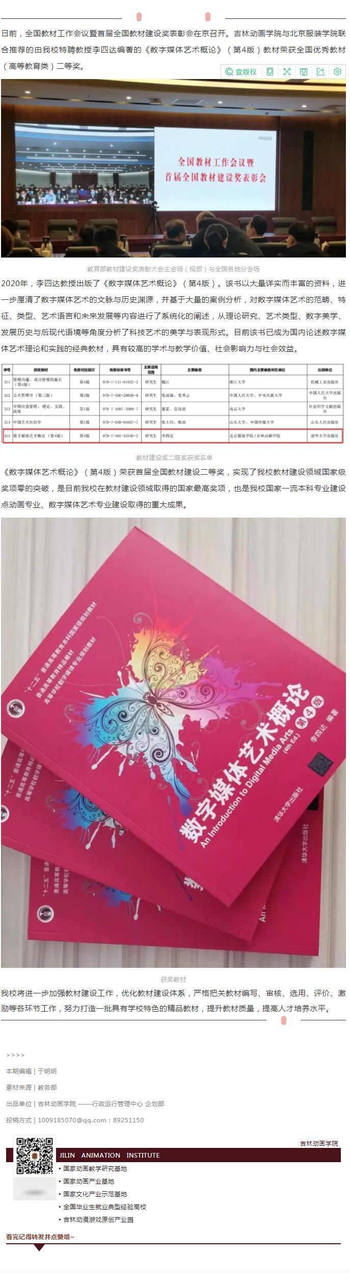 【JAI·新】伟德官网李四达教授主编的《数字媒体艺术概论》(第4版)荣获首届全国教材建设奖
