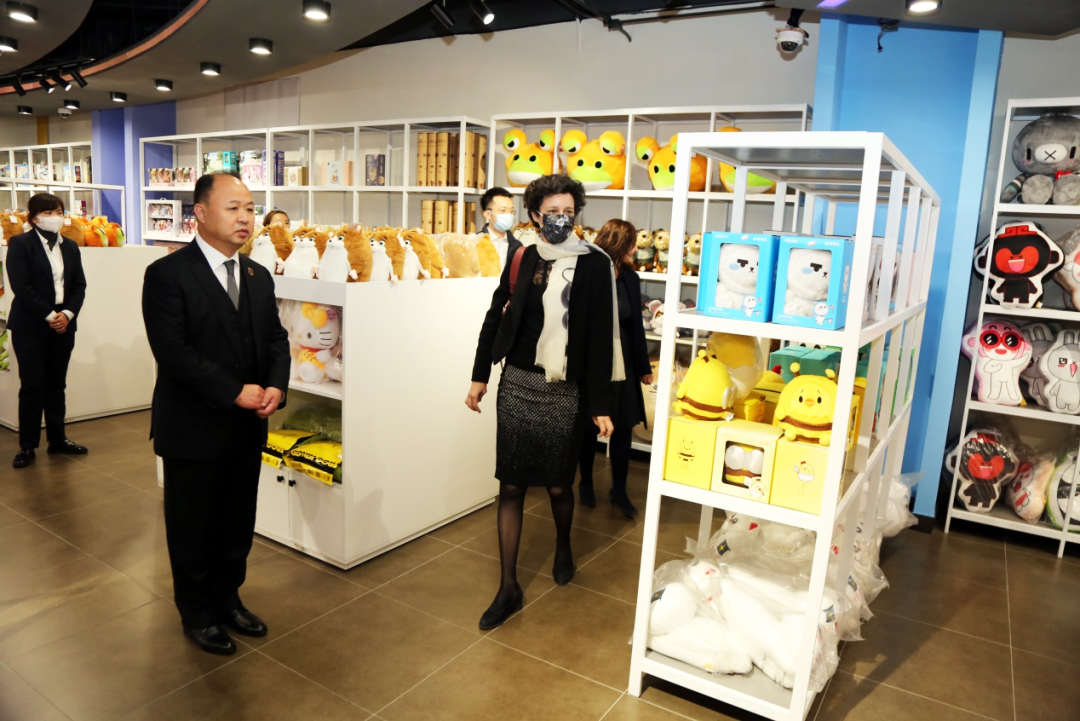 【JAI·合】深化合作 共同推动中法教育交流——法国驻沈阳总领事馆总领事一行来访 发布时间:2021年11月04日 08:47:55 浏览:次 11月2日, 法国驻沈阳总领事馆总领事安澜女士(Anne RULLIAT)一行三人到伟德官网参观访问。伟德bv国际体育董事长、校长郑立国接待了到访的法国客人。 ▲安澜总领事参观三昧魔漫衍生产品店