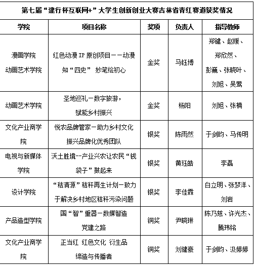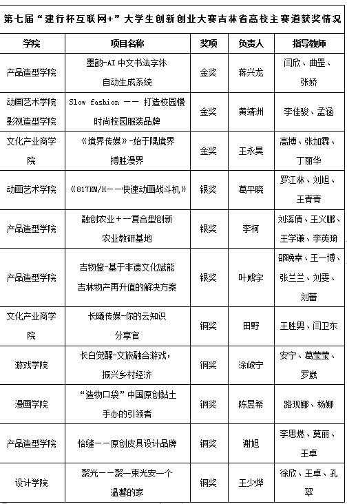 第七届吉林省“互联网+”大学生创新创业大赛伟德bv国际体育省赛获奖信息