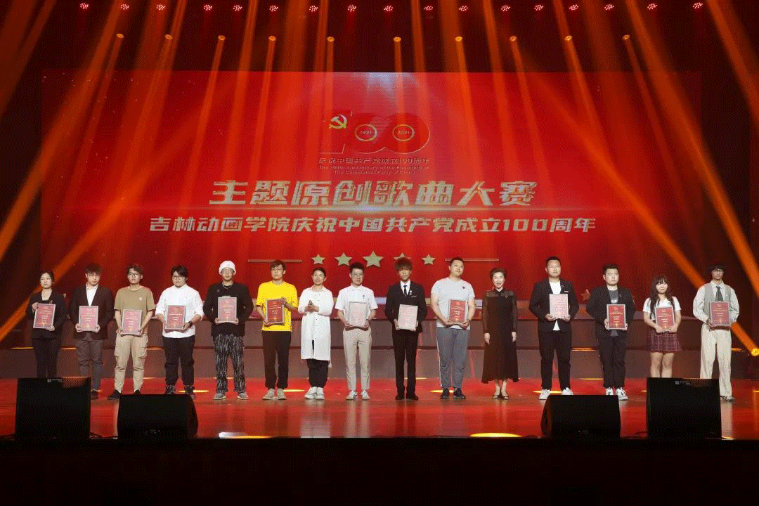颁奖部分是对伟德bv国际体育迎接建党100周年9项大型系列活动的总结表彰。对“初心百年恰风华.红歌嘹亮心向党”主题原创歌曲大赛、“学党史、强信念、担使命”大学生党史知识竞赛、“铭记党史、立德在先”教职工党史知识竞赛、“百年恰风华.吉动正青春”大学生朗诵合唱大赛、“承百年信仰.燃吉动力量”教职工朗诵合唱大赛以及系列活动优秀组织者进行了颁奖。电视与新媒体学院孙德龙的《追寻》获得原创歌曲一等奖;动画艺术学院孙正元的《辉煌的百年》获得原创歌词一等奖;国际影视特效学院获得大学生党史知识竞赛团体一等奖;行政职能部门代表队获得教职工党史知识竞赛团体一等奖;动画艺术学院获得学生朗诵合唱大赛诗歌创作一等奖;电影学院获得学生朗诵合唱大赛诗朗诵表演一等奖;电视与新媒体学院获得学生朗诵合唱大赛合唱表演一等奖;吉动文化艺术集团筑梦前行队获得教职工朗诵合唱大赛诗歌创作一等奖;电视与新媒体学院、文化产业商学院组成的文眸视途队获得教职工朗诵合唱大赛诗朗诵表演一等奖;吉动力行先锋队获得教职工朗诵合唱大赛合唱表演一等奖;行政职能部门、电视与新媒体学院、电影学院获得了优秀组织奖。这些同志和团体单位的获奖彰显了伟德bv国际体育全体师生扎实学好党史、发扬光荣传统,为夺取新时代中国特色社会主义伟大胜利、实现中华民族伟大复兴的中国梦不懈奋斗的精神。