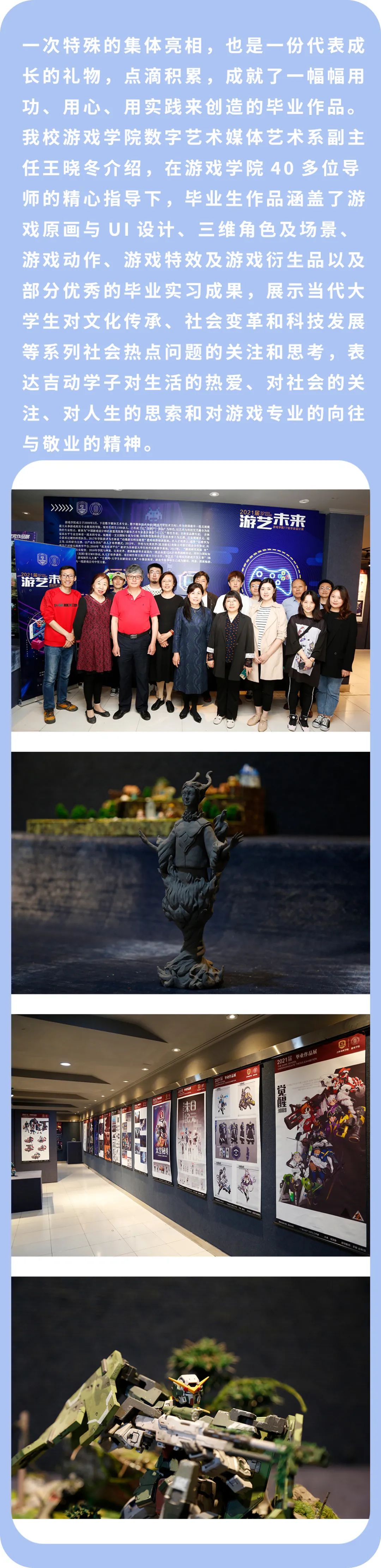 透过这些激荡着创新火花、饱含着青春激情、凝炼着“吉动精神”的优秀毕业作品,我们看到了游戏学院“以教学为主导,以科研为支撑,以产业为导向”人才培养模式的斐然成绩,体会到“动漫游双师双能型”培养和“开放式项目制”的硕果累累。作为我国最早一批且规模最大从事游戏相关专业教育的学院,自2009年成立至今,伟德官网游戏学院培养了3000余名数字媒体艺术及技术专业领域的应用型人才;目前已形成了以”学研产一体化”为特色、以艺术与科技交叉融合为优势的专业特点,被誉为“中国游戏设计师”的摇篮。同时也是吉林省“十二五”特色专业、吉林省品牌专业、吉林省特色高水平专业、吉林省一流本科专业,2021年获评国家级一流本科专业建设点。
