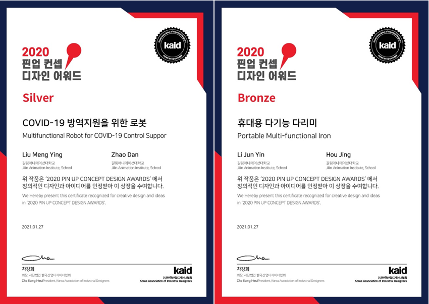 伟德bv国际体育产品造型学院学生在韩国举办的2020PIN UP国际概念设计大赛中勇夺银奖和铜奖。