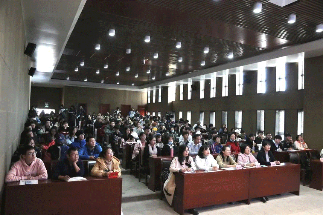 11月13日,由伟德官网通识教育学院举办的“青年学者论坛”系列讲座之四——《满族文化与艺术传承》在文化艺术中心二楼多功能会议室精彩开讲。讲座由通识教育学院副院长周海燕主持,教务部教学建设办公室副主任唐莲老师、通识教育学院全体专职教师及170多名来自动画艺术学院和漫画学院的学生代表共同聆听本次讲座。