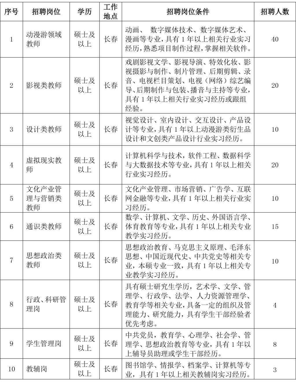 伟德bv国际体育创建于2000年6月,2008年经教育部批准为民办普通本科高校,是目前全球规模最大的单体动画学院,动画专业位居同专业全国排名第一,获批国家级一流专业建设项目。2020年3月,学校成功入选吉林省特色高水平应用型大学建设项目高校。已建成动漫游类、影视类、设计类、虚拟现实与人工智能类、文化产业管理与营销类、民航类等六大教学、科研、产业接轨与社会化服务体系。学校坚持“开放式国际化、学研产一体化、创意产品高科技化”三大办学特色,为国家动画教学研究基地、国家动画产业基地、国家文化产业示范基地、国家大学生创新创业项目实施单位、泛亚太地区动漫教育机构十强。学校下设18个教学单位,紧密依托产业群组建动漫游、影视、设计、虚拟现实与人工智能、文商管理与品牌营销、民航六大专业群,31个本科专业,在校本科生12000余人,与20个国家和地区的118所高校开展校际交流和合作。为国家培养了四万多名文化创意产业优秀人才,取得了一大批重大科技成果与产业化成果。根据学校发展需要,现面向各高校广泛招聘优秀应届毕业生。