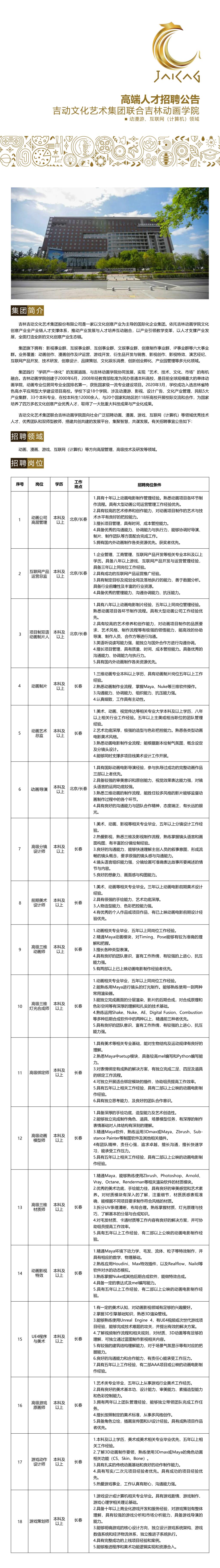 【吉动·速围观】吉动文化艺术集团联合伟德bv国际体育发布高端人才招聘公告[动漫游、互联网(计算机)领域]