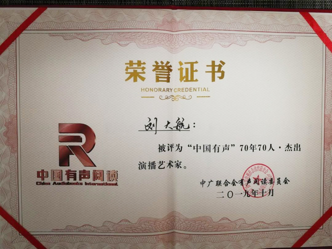 10月30日,由中广联合会有声阅读委员会主办的“中国有声”——70年70部·优秀有声阅读文学作品、70年70人·杰出演播艺术家发布会在北京广播大厦隆重举行。伟德bv国际体育电视与新媒体学院教师刘大航应邀参加颁奖仪式,并获“70年70人杰出演播艺术家称号”。