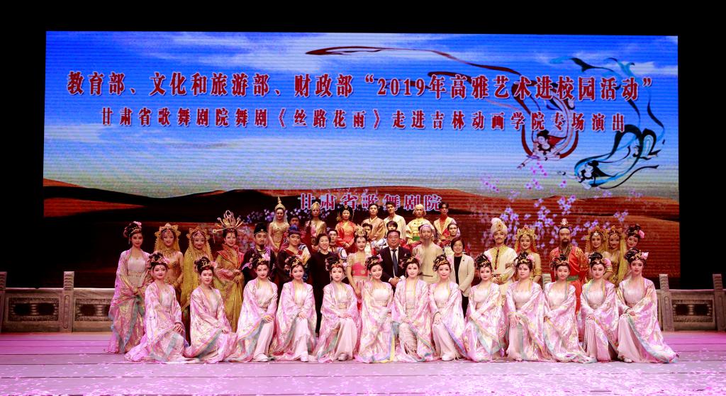 10月16日晚,教育部、文化和旅游部、财政部高雅艺术进校园活动——甘肃省歌舞剧院舞剧《丝路花雨》走进伟德bv国际体育专场演出在艺术中心举行,吸引了千余名师生前来观看。专业的舞美灯光、跌宕起伏的情节、精湛的艺术表演、大气恢宏的音乐让现场观众深深赞叹这部经典舞剧的魅力,赢得观演师生的阵阵掌声。