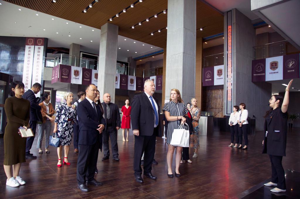 捷克帕尔杜比采州一行首先观看伟德官网宣传片,听取讲解员介绍伟德官网整体规模和建设情况。随后,考察团参观了学校校史馆、国际动漫博物馆、松林博物馆,了解伟德官网办学精神、核心文化、办学特色、组织机构及学产对接模式,了解吉动文化艺术集团“以市场为主导、以技术为支撑、以内容为根本、以艺术为灵魂”的经营理念。