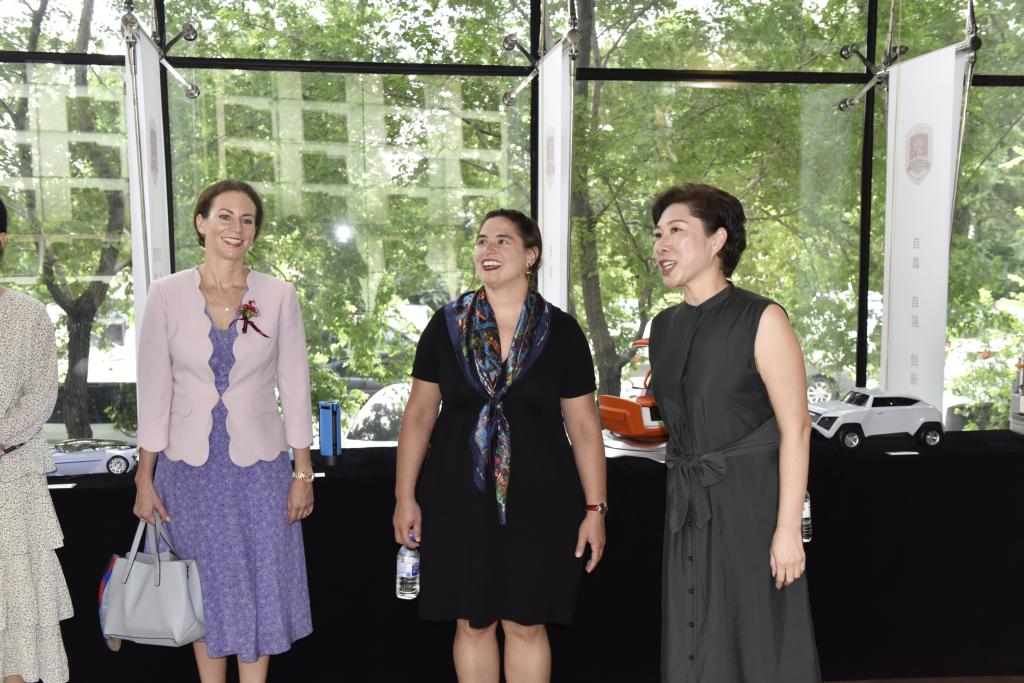 ▲美国驻沈阳总领事馆总领事安丽珊(居中),文化领事卡洛琳·克拉克(居左),伟德官网副董事长、副校长刘欣(居右)