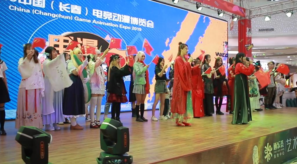 值得一提的是,节目在间休时,一场“我和我的祖国”快闪活动正在悄悄准备。《我和我的祖国》音乐响起,三十多名coser手持国旗陆续上台,引发了现场观众一起合唱,现场掌声雷动。这是动漫嘉年华对祖国七十周年华诞的献礼,彰显了当代青年与众不同的个性和拳拳赤子爱国之心。