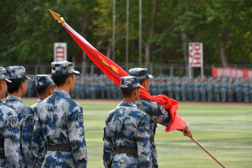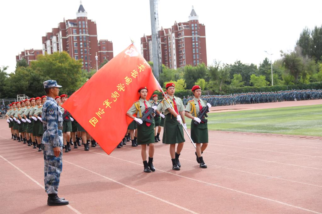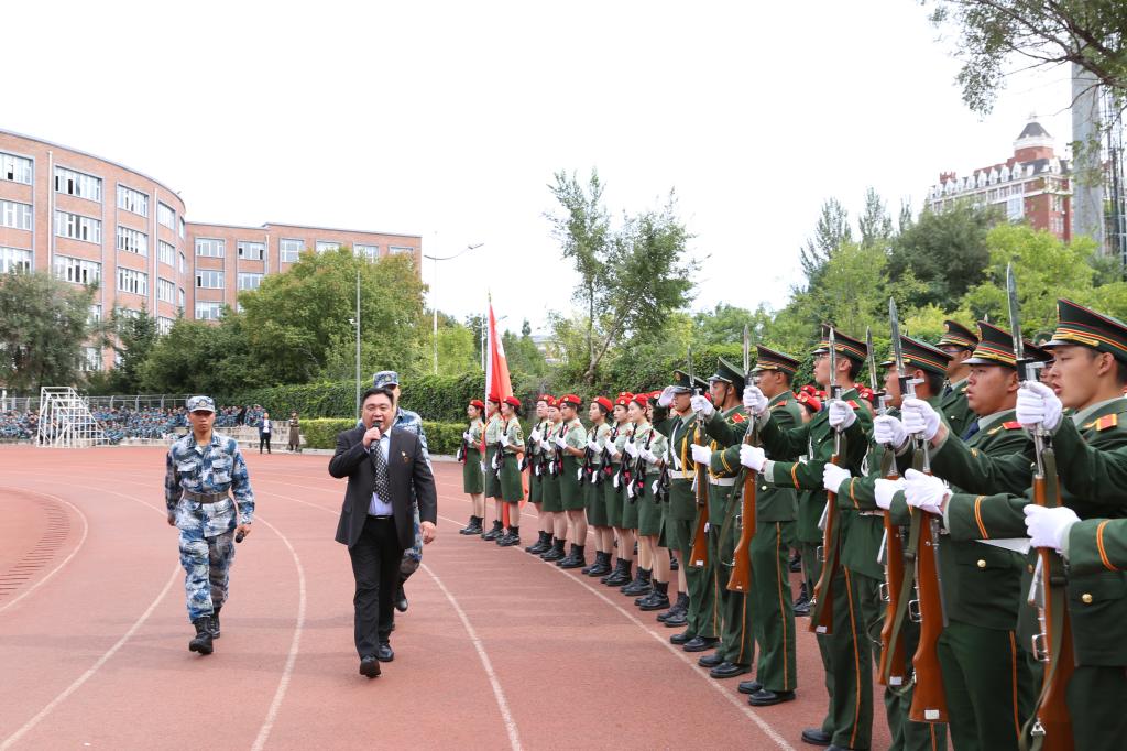 伟德bv国际体育董事长、校长郑立国,党委书记、督导专员张炬,副董事长、副校长刘欣,副校长王春利、王晓岩、白立明,校长助理彭巍、金鑫,董事会董事张砚为,董事会监事李晶、许小多,中国人民解放军93246部队副旅长李伟上校、管理科长于伟佳中校、管理科参谋曹庆伟中尉,以及学校各学院、部门领导和老师、全体军训教官及2019级全体新生参加了此次活动。