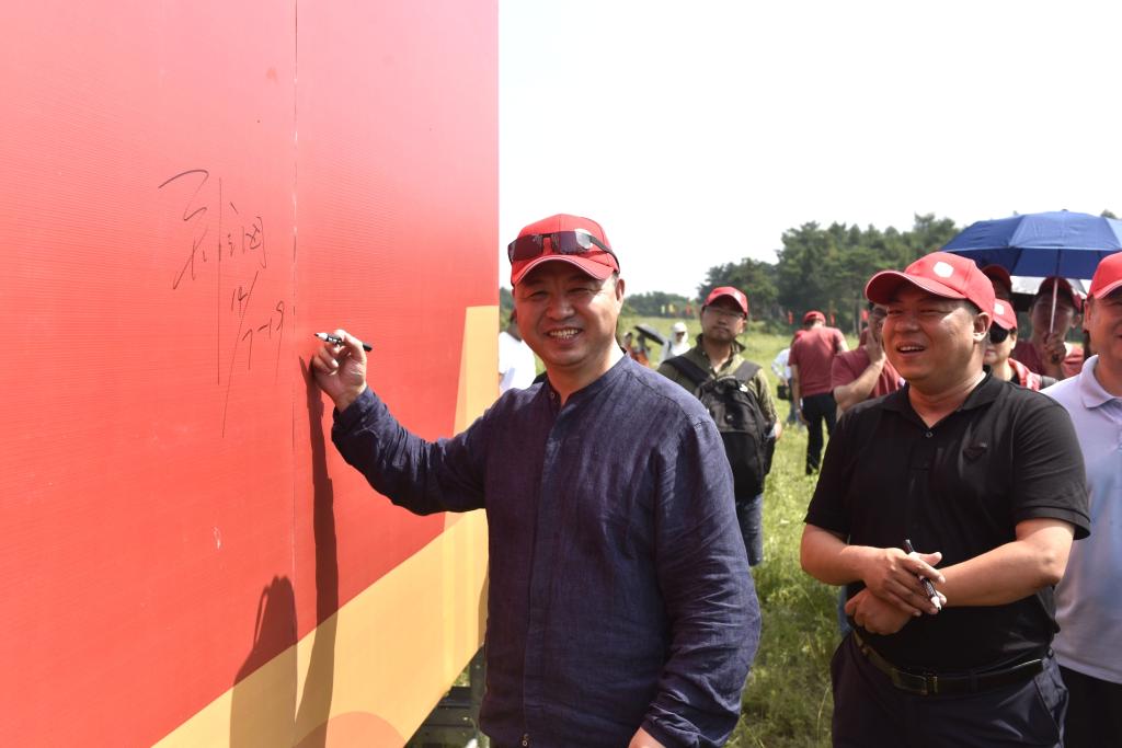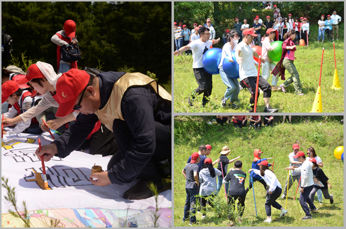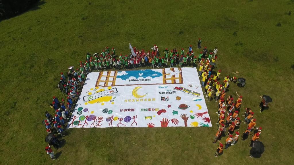 而吉动文化艺术集团这边不仅有破冰游戏“爱的抱抱”——打破人际交往间的藩篱,拉近企业团员之间的距离,更在青天、白云和绿草的映衬下,由董事长郑立国率领各大事业群的员工同心协力完成了一幅长15米,宽10米具有企业文化代表意义的巨幅画作。当一副巨大的画面直观成像在眼前的时候,每一位参与者对企业的归宿感油然而生,整个制作过程中,团队成员相互协作,增进团队成员间的凝聚力。