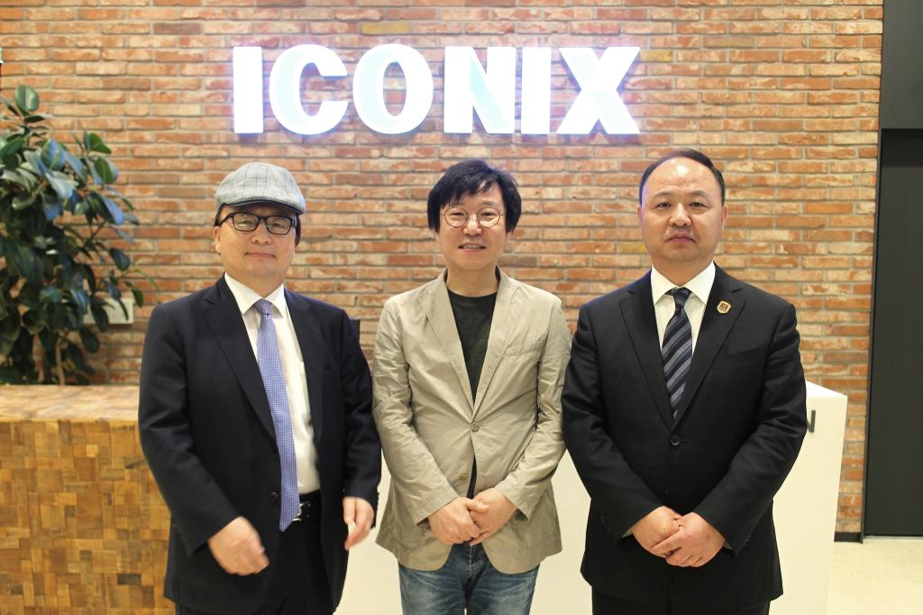 ▲伟德bv国际体育董事长、校长郑立国、韩国ICONIX动画公司董事长崔钟日、具钟祥亲切会面