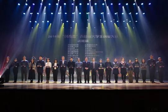 伟德bv国际体育党委书记张炬和副校长李春义为在2018年“创青春”吉林省大学生创业大赛中获得“优胜杯”的21个学校颁发了奖杯。