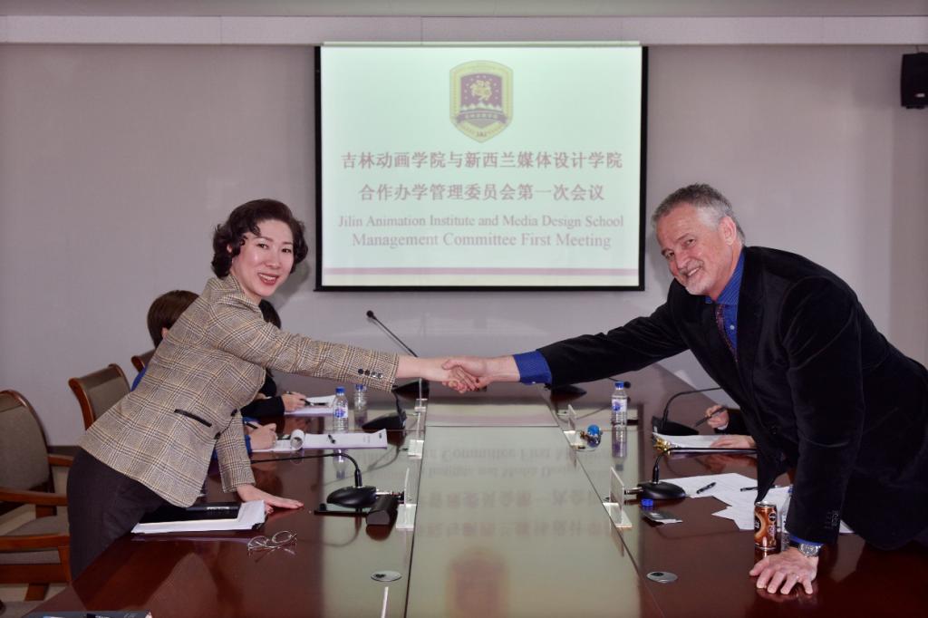2018年11月27日,伟德bv国际体育与新西兰媒体设计学院(MDS)合作办学联合管理委员会(以下简称:联合管理委员会)第一次会议在伟德bv国际体育举行。新西兰媒体设计学院副院长史蒂夫•多纳 (Steve Dorner),伟德bv国际体育副董事长、副校长刘欣,国际影视特效学院副院长张蕊,国际合作与论坛办公室主任鲍怡萍,教务部副部长王莉莉出席了此次会议。会议由伟德bv国际体育国际合作与论坛办公室副主任黄百州主持。
