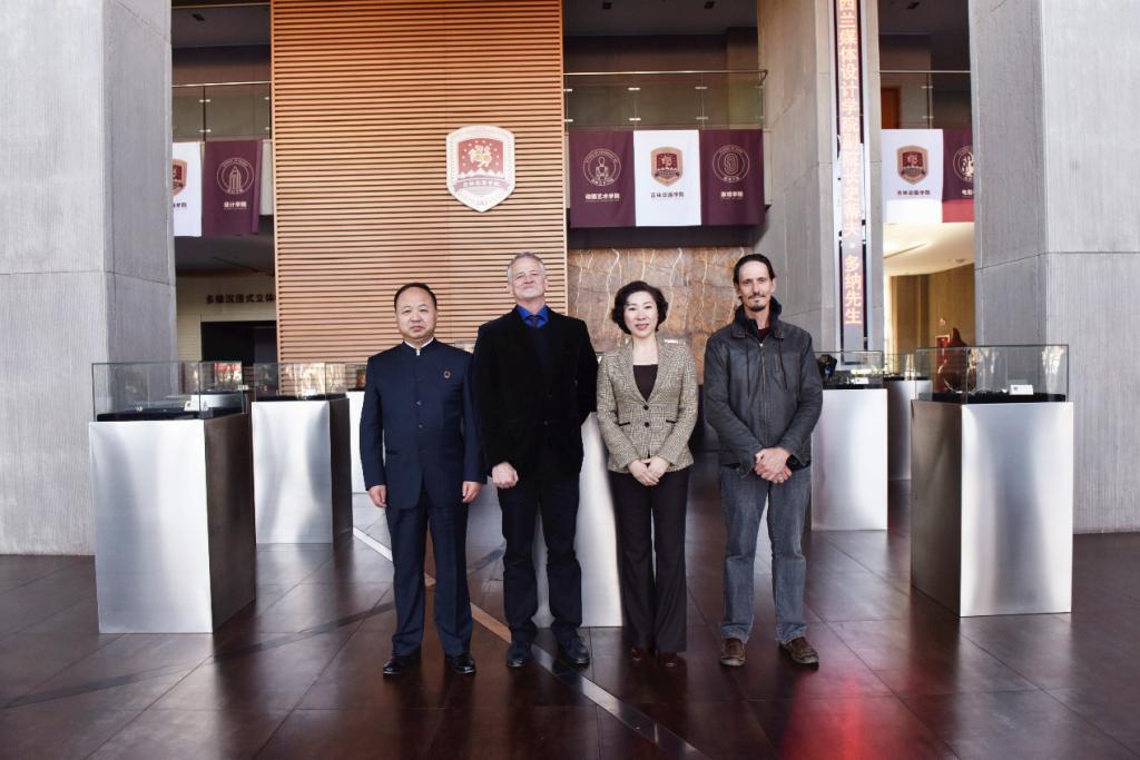 伟德bv国际体育董事长、校长郑立国与新西兰媒体设计学院副院长史蒂夫•多纳(Steve Dorner)、讲师瑞恩•马拉尼(Ryan Mullany)亲切合影