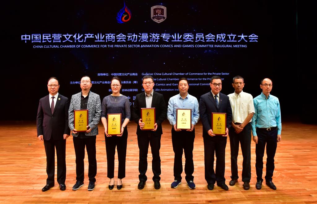 顾汉春宣读了专委会第一届第一次主任委员办公会议决定。郑立国、王兆成、赵承、顾汉春为中国民营文化产业商会动漫游专业委员会正式成立揭牌。赵承代表中国民营文化产业商会送上非物质文化遗产——武强年画《百福图》作为专业委员会成立的贺礼。王兆成、顾汉春、赵承为动漫游专业委员会主任委员、副主任委员授牌。