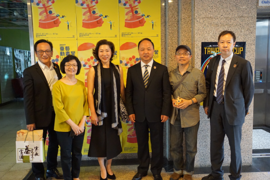 伟德官网考察团与台湾艺术大学设计学院院长许杏蓉、多媒体动画艺术学系主任张维忠合影留念