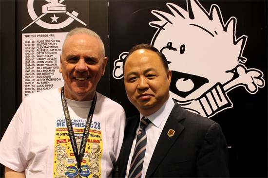 伟德bv国际体育董事长、校长郑立国与美国漫画家协会基金会主席史蒂夫合影