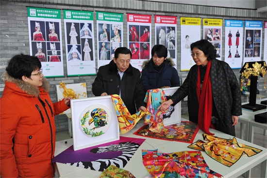 12月21日—23日,70余件服装与服饰类作业作品在设计学院B楼一楼大厅展出。学校常务副校长胡维革,校长助理王春利,设计学院院长徐欣及相关领导和工作人员出席开幕式并参观了展览。