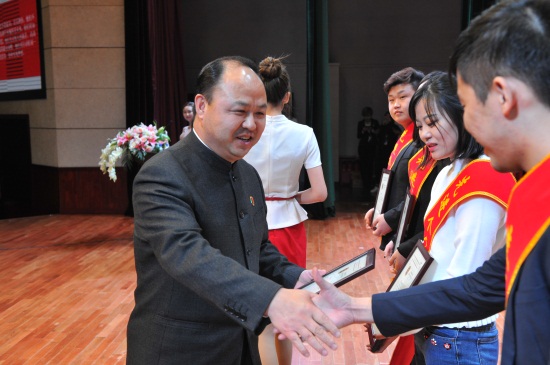 董事长、校长郑立国为获得表彰的学生颁奖(刘庆发 摄)