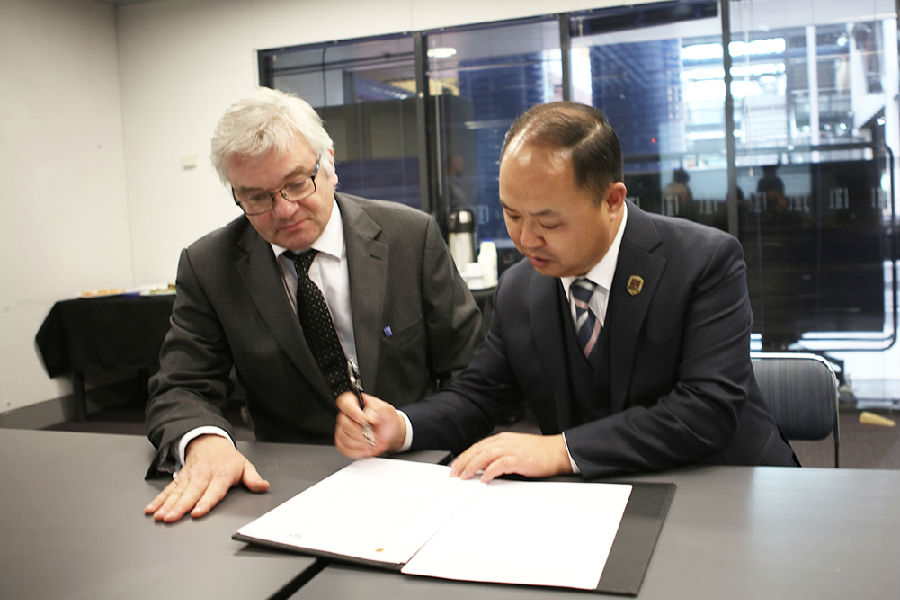董事长、校长郑立国与惠灵顿维多利亚大学名誉副校长迈克·威尔逊签署合作备忘录