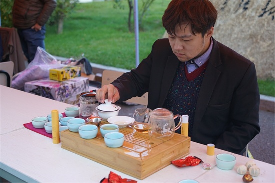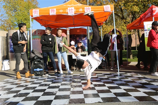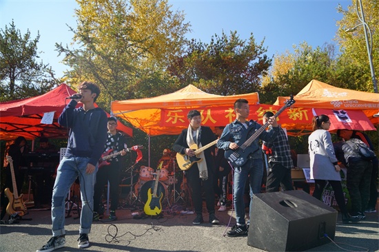 上午8时,各个社团倾巢出动,早早地摆好了“摊位”。为了吸纳新生力量,社员们花招百出、纷纷“亮剑”,快板、古筝、侠客、摇滚歌手悉数亮相,赤脚扛着“金箍棒”的“大圣”凭借奇特的造型吸引了所有人的目光。不同类型的学生社团不仅精心设计了宣传海报,相关道具和展品也一应俱全,全力以赴地展现各自社团的文化内涵。活动现场,各类文艺表演技压全场,“RPG零式社”的cosplay秀全天候演出,社员们身着华丽的服装,一个个就像从动漫中走出来人,与原作保持了较高的还原度,他们踩着动感的音乐节奏起舞,引得同学们争相拍照留念;“乐队社”在狭小的空间里开了个露天演唱会,他们沉醉于音乐世界的专注神情就是社团最好的招牌,很多同学驻足围观;“D-super街舞社”成员们的动感舞姿让人为之倾倒;“德音孔昭汉服社”的社员们身着清丽、端庄的汉服,更有男生社员展现了“百步穿杨”的箭法,吸引了很多志同道合的同学。