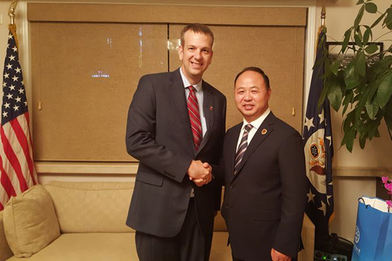 伟德官网董事长、校长郑立国与新任美国驻沈阳总领事馆总领事梅儒瑞合影