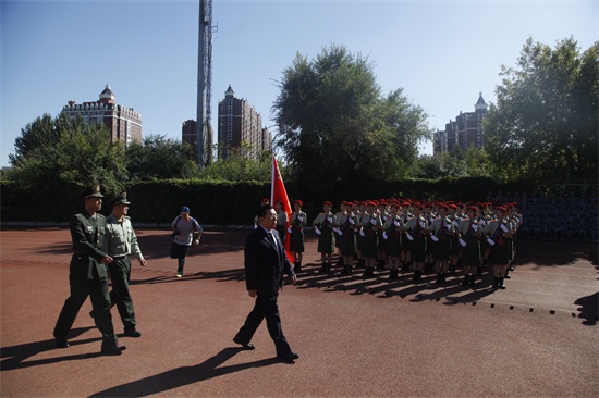 常委副校长胡维革检阅新生队伍(李佳明 摄)