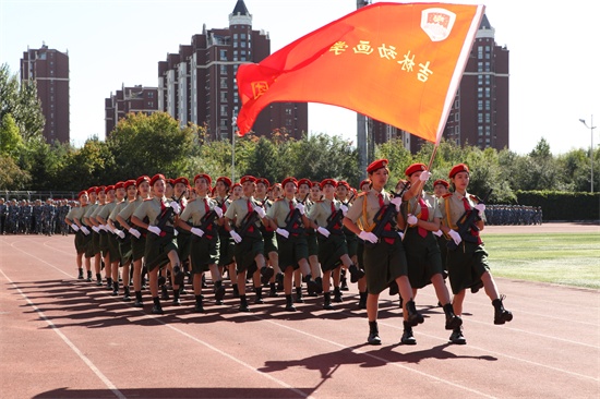 本次阅兵共有10所学院的27个方队,最先登场的是女子仪仗队,她们手持钢枪,巾帼不让须眉,踢着整齐划一的正步,一展青春风采。10所学院的方阵用刚劲有力的步伐,展现了动画人的磐石般的意志。同学们军容严整,精神抖擞,昂首阔步,每一个方阵都以威武的军姿和嘹亮的口号,展示了他们军训的成果。