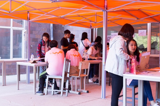动画艺术学院的新同学一到达学校就被等候在月亮门的新生接待人员引导进入动画艺术学院的新生接待处。新生接待处设立路家长休息区,新同学疑惑得到解答的同时,家长也可以放下沉重的行李,好好休息,等待新同学在图书馆缴费并领取流程表。太阳火辣辣地炙烤着大地,许多家长为自己的孩子忙得大汗淋漓,但这丝毫没有影响新生们进入大学校园的热情。