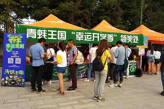 《青蛙王国》为提高大众对品牌的参与度和关注度,借助今年开学迎新活动,由吉林盘古公司和吉林禹硕公司联合举办了幸运开学季《青蛙王国》送大礼的活动。本次幸运开学季大转盘共设有6个奖项,内容包含《青蛙王国》精美的衍生产品,包括抱枕、毛绒玩具、衣帽、吊饰等等。通过两天活动统计,共有2813名新老学生和家长,热情参与本次幸运开学季送礼活动,并纷纷成为忠实的“蛙迷”。