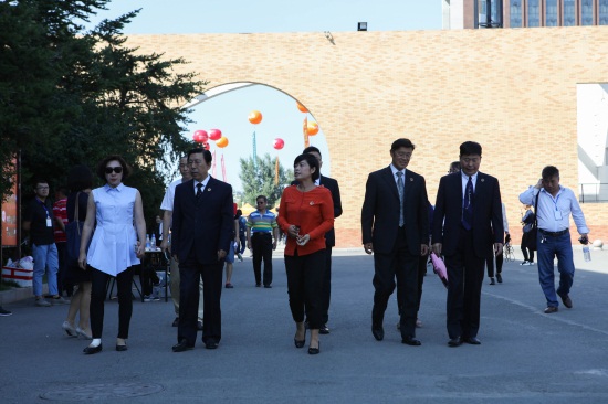 下午两点,顶着当头的烈日,学校党委书记、副校长王清山,学校副董事长、副校长刘欣,常务副校长胡维革,副校长岳学军,党委副书记、校长助理王晓岩,校长助理王首民、王春丽、孙淑梅、金鑫,董事会监事张砚为等领导都来到迎新现场,与各学院主要领导、骨干教师、共青团干部、学生会干部、前来报到的新生以及新生家长亲切交谈,介绍学校学研产一体化的办学方针,各特色专业的建设,了解招生中遇到的实际情况,新生和家长的需求。一路上,学校领导对新生的接站、入学手续、住宿安排等都一一过问。