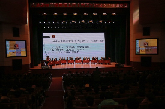 竞赛题目围绕消防安全、治安安全、饮食安全、交通安全等方面内容,分必答环节、抢答环节和观众互动环节3个环节展开。学校9个学院各选派3名学生组成了参赛代表队,赛场上选手们竞争激烈,在观众互动环节中,同学们踊跃举手回答问题,将整个赛场气氛带入高潮。