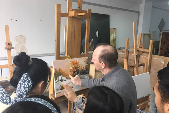 带着极大的工作热情,阿纳托利教授来不及休息便投入到教学和创作中。在示范俄罗斯传统风景画技法时,从工具选择、用笔,到颜料调和,阿纳托利教授都逐一做出演示,不遗巨细。现场目睹俄罗斯艺术家的创作,学生们的审美情趣和创作热情得到了很好的激发。阿纳托利教授在漫画学院绘画系挑选8名优秀学生进行重点辅导,计划在2个月的时间里共同创作以长白山风景为题材的大型系列组画,从学生作品中遴选出优秀作品参加俄罗斯绘画展览,加以推广、销售。