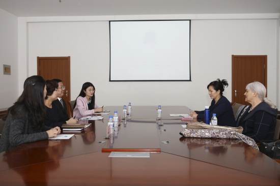 在伟德官网国际合作与交流中心副主任鲍怡萍、干事郝妍的陪同下,代表团观看了学校的宣传片和4D电影样片《青蛙运动会》,并参观了伟德官网校史馆、博物馆。代表团对伟德官网建校以来取得的成就表示赞叹。